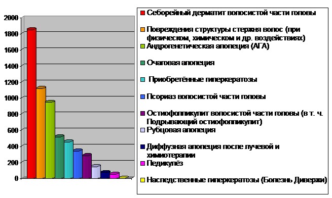 За прошедший год увеличилось в 2,5 раза количество обратившихся за консультацией, причем количество женщин из них увеличилось с 58% до 65,8%. В основном это связано с вопросами по быстрому восстановлению кожи головы и волос поврежденных при окрашивании и сушке. Возраст обратившихся как и в прошлом году в основном от 18 до 34 лет.
